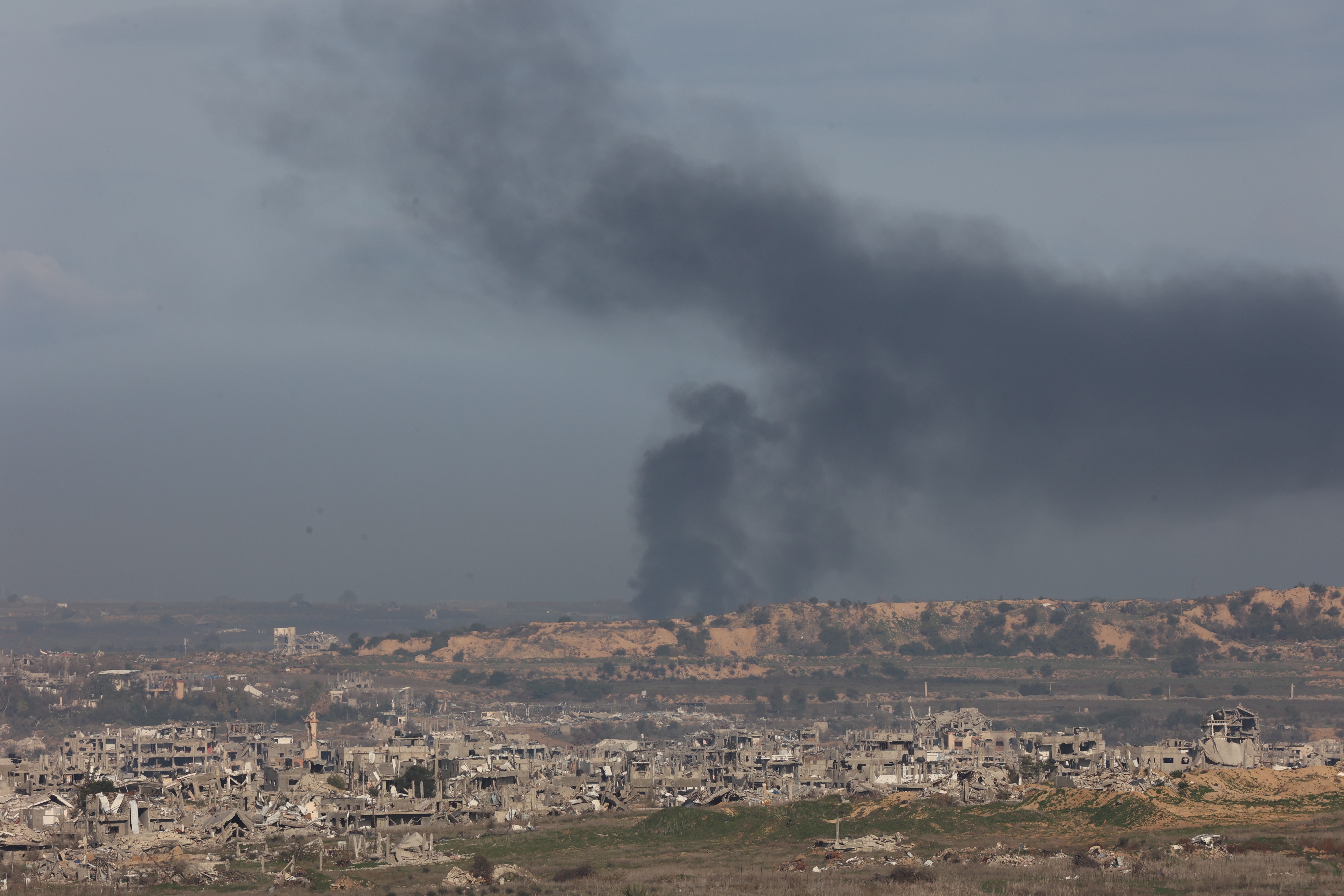 这是1月19日从以色列南部拍摄的加沙地带遭袭情况。新华社发(吉尔·科恩·马根摄)停火前景不明